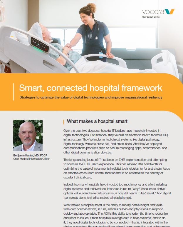 Over the past two decades, hospital IT leaders have massively invested in digital technologies. They’ve implemented clinical systems like digital pathology, digital radiology, wireless nurse call, and smart beds. And they’ve deployed communications products such as secure messaging apps, smartphones, and other digital communication devices.